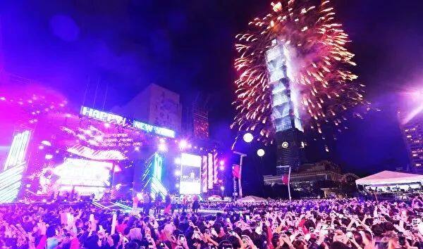 这一晚在台北101大厦,观看烟火秀、辞旧迎新的旅客也很多。大楼外立面灯光或闪烁或熄灭,一次次变化中,逐渐掀起高潮,直到10秒倒数结束那一刻,大楼外墙上放出烟火,外立面LED上露出新年画面,整个台北瞬间被点亮了,人们欢呼雀跃,场面十分壮观。